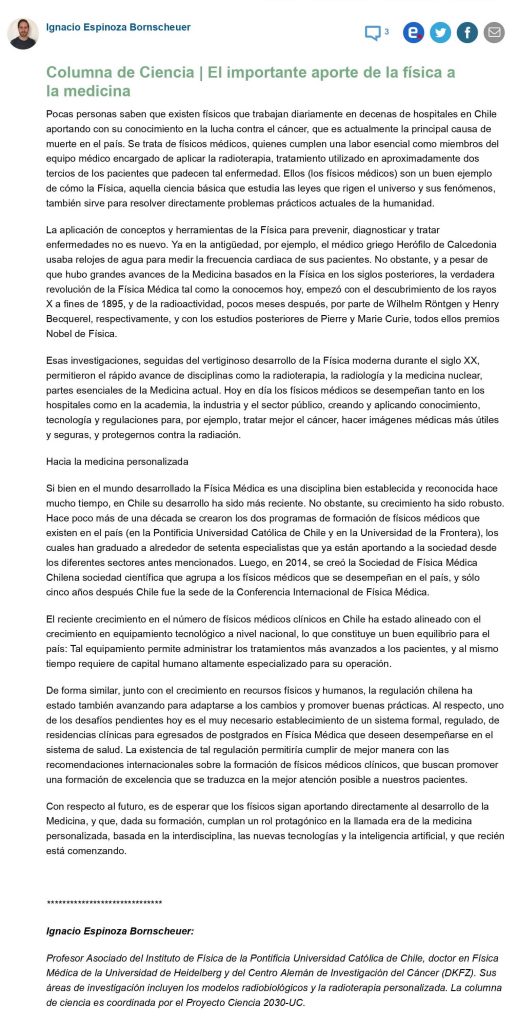 Columna Emol: ” El importante aporte de la Física a la Medicina”, por Ignacio Espinoza
