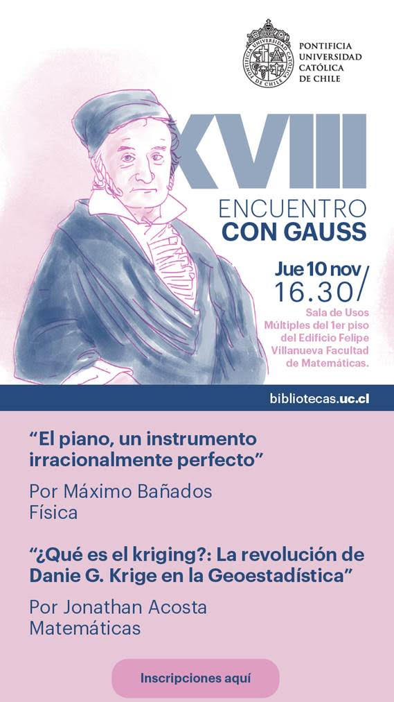 Extendemos la invitación a la Comunidad del Instituto de Física a a un nuevo Encuentro con Gauss,el jueves 10 de noviembre a partir de las 16.30 hrs., en la Sala de Usos Múltiples del primer piso del Edificio Felipe Villanueva de la Facultad de Matemáticas.