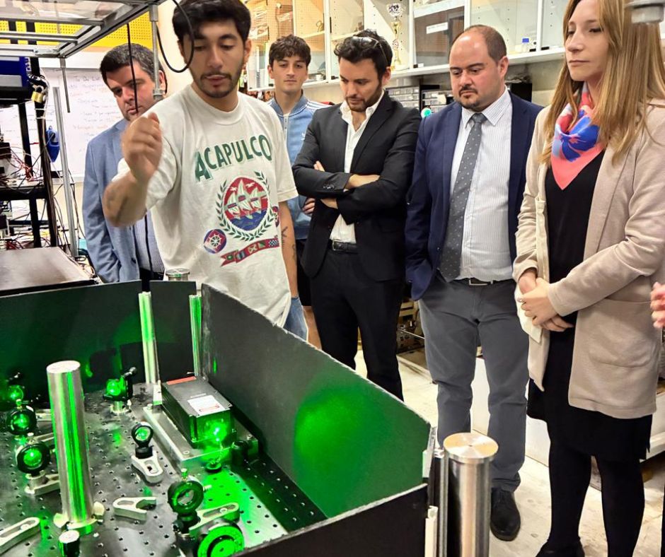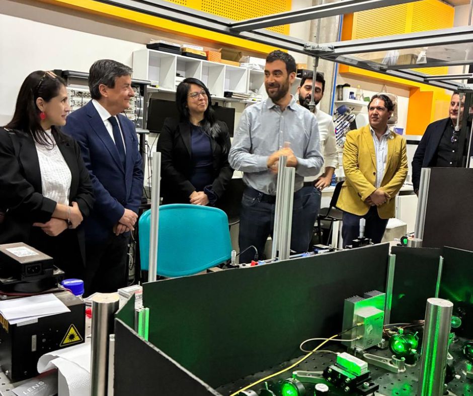 El martes 11 de noviembre, recibimos en el Laboratorio de Materia Condensada y Óptica Cuántica, dirigido por el investigador Jerónimo Maze, al Embajador Luis Plaza, Director de la División de Ciencia, Energía, Educación, Innovación y Astronomía del Ministerio de Relaciones exteriores; Lucía Núñez, Jefa del Departamento de Ciencias, Tecnología, Educación y Astronomía; y Gabriela Pérez, encargada de Diplomacia Científica y Tecnologías Cuánticas de la misma institución, además de Gonzalo Avaria, Ariel Norambueno,.Nicolás Viaux de la Universidad Técnica Federico Santa María y Christian Blanco Jaksic, Subdirector de la Vicerectoría de Investigación.