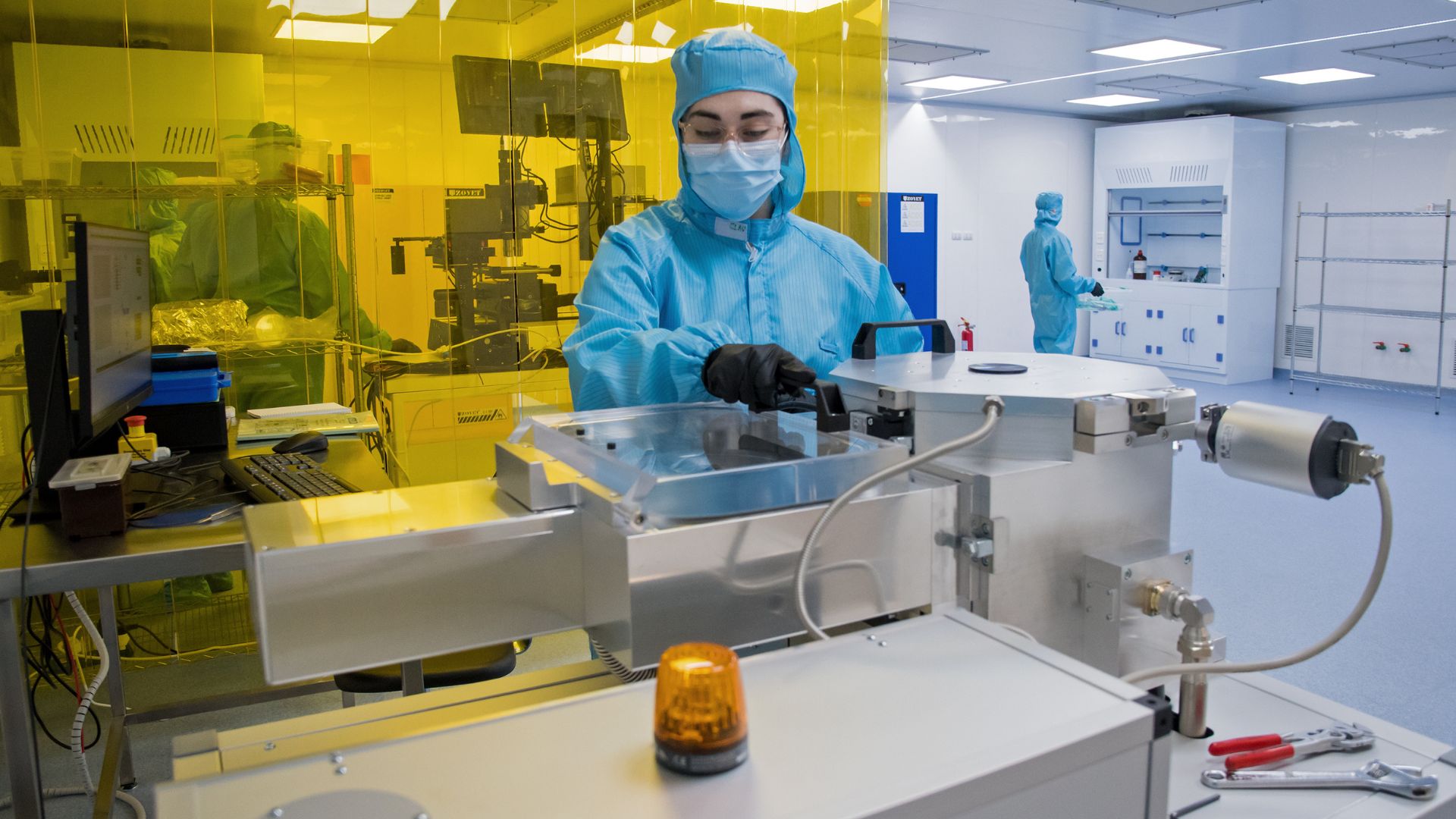 The air purity in this room is even better than the rest of the clean room since it is designed for high-resolution optical lithography.