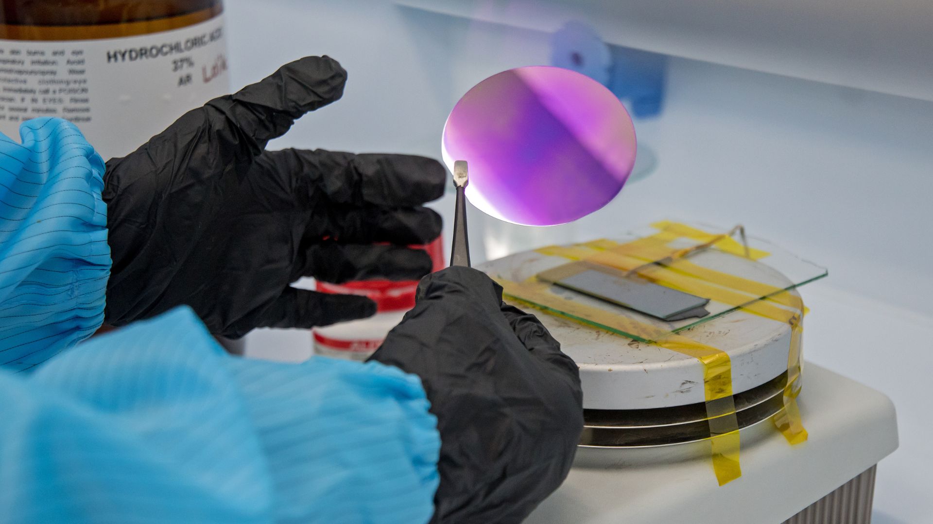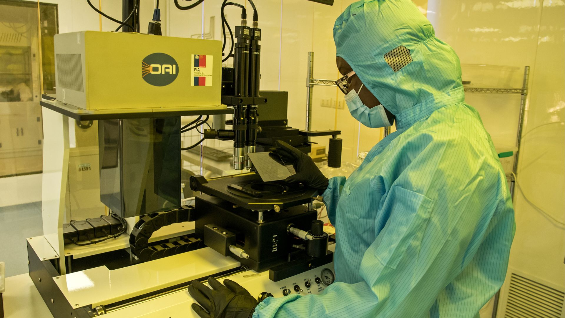 The user works with the reactive ion etching equipment (RIE), which completes the process of etching structures with micrometric resolution through bombardment with ions (FONDEQUIP EQM190136).