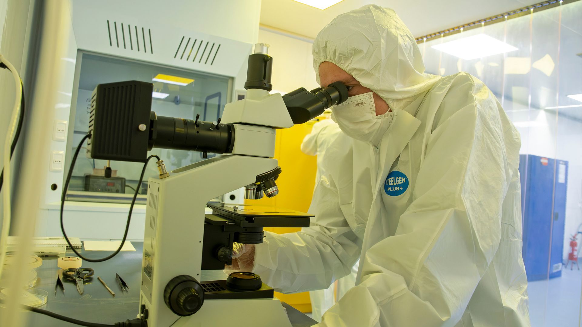 The user is working with an optical microscope to verify the lithography of a silicon wafer.